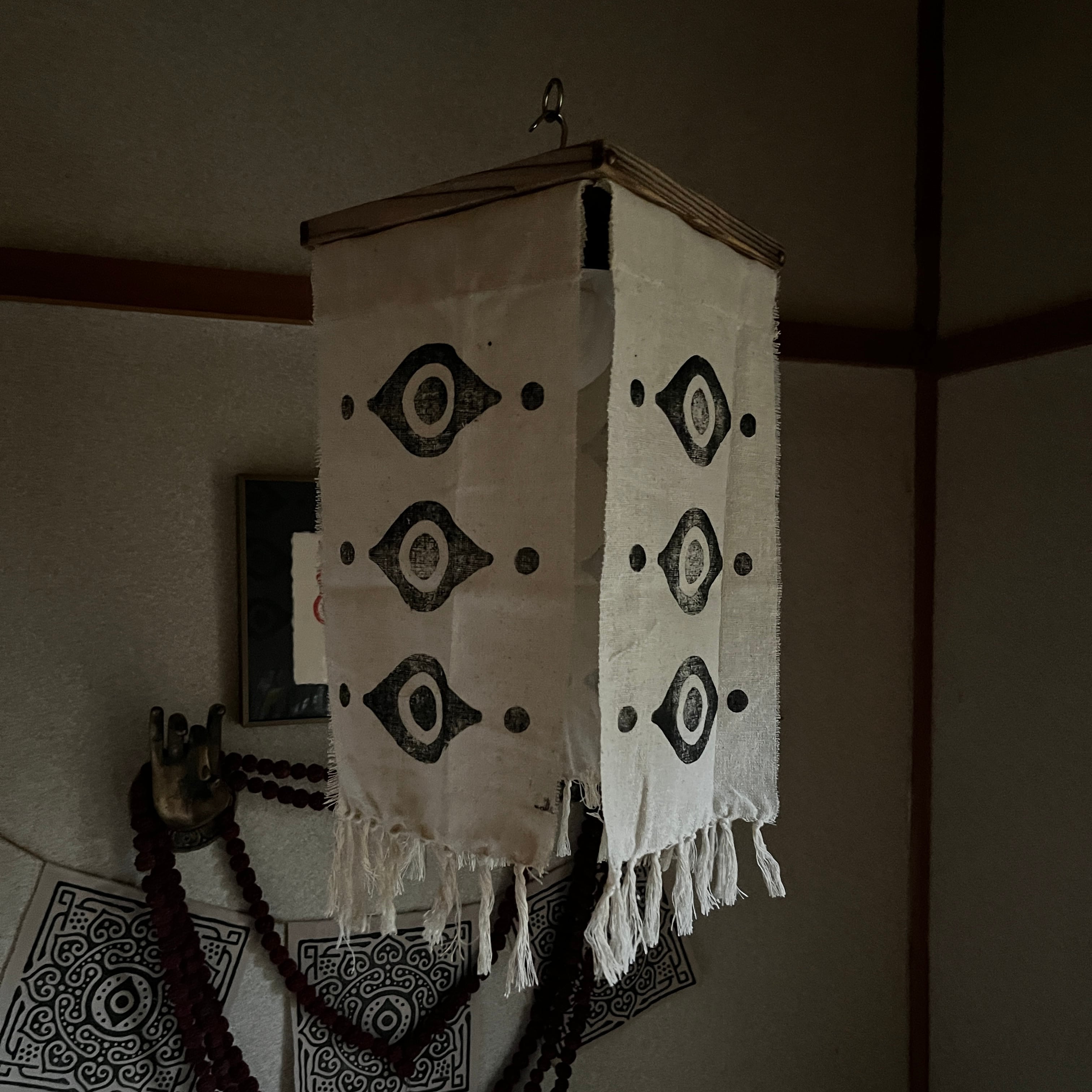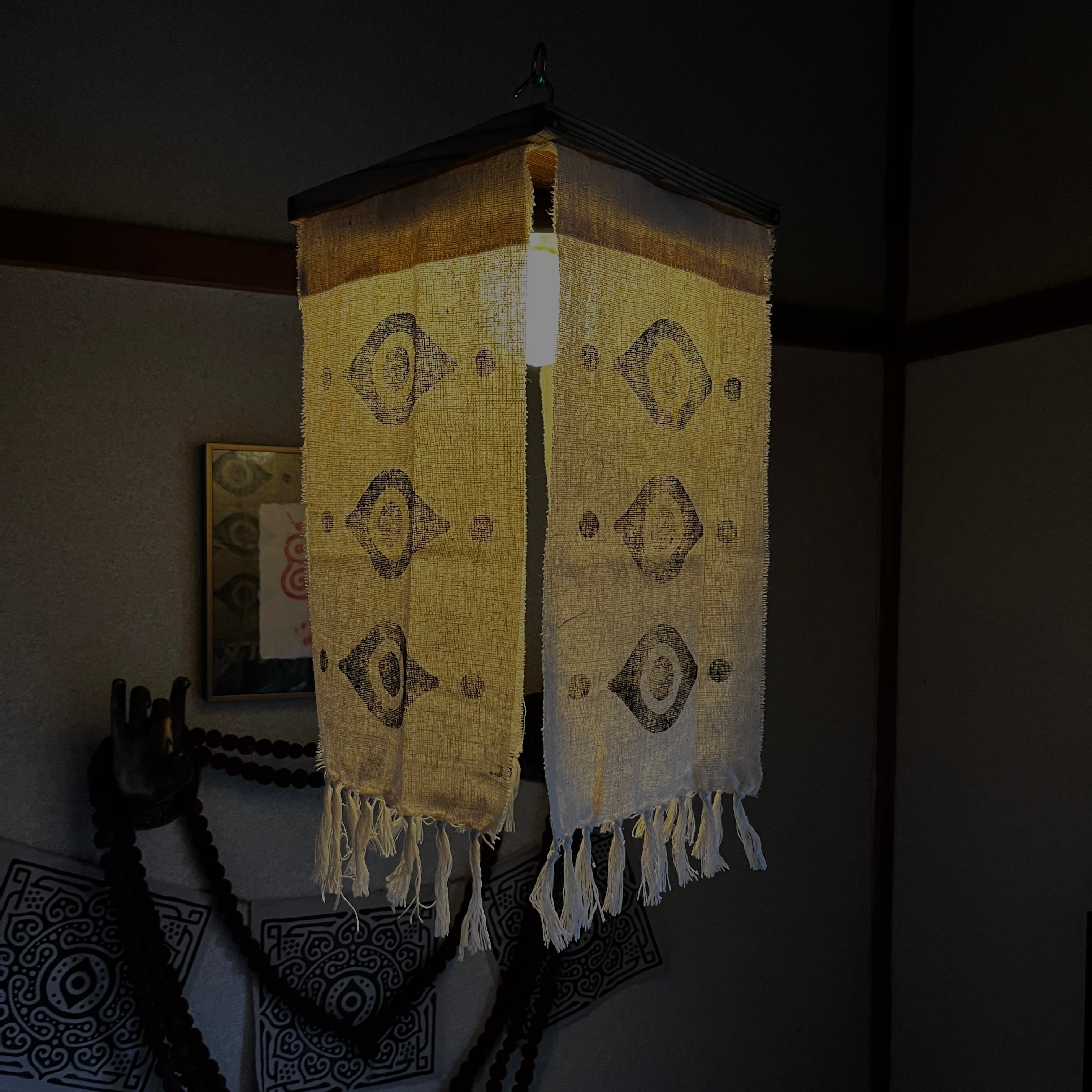 木枠に綿の暖簾を垂らした怪しい灯
